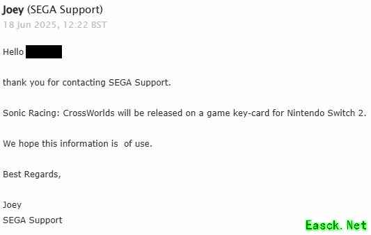 据知名爆料人Wario64分享的信息,SEGA客服邮件中暗示将采用钥匙卡形式。与此同时,外媒Gematsu也指出,官方目前公开的游戏封面或为临时封面,与此前SEGA在《葛叶雷道复刻版》等游戏中的做法类似。 尽管尚未获得官方确认,但种种迹象已让玩家对是否能拥有真正的实体卡产生疑问。业内人士建议玩家可等待更接近发售日的正式公告。 |