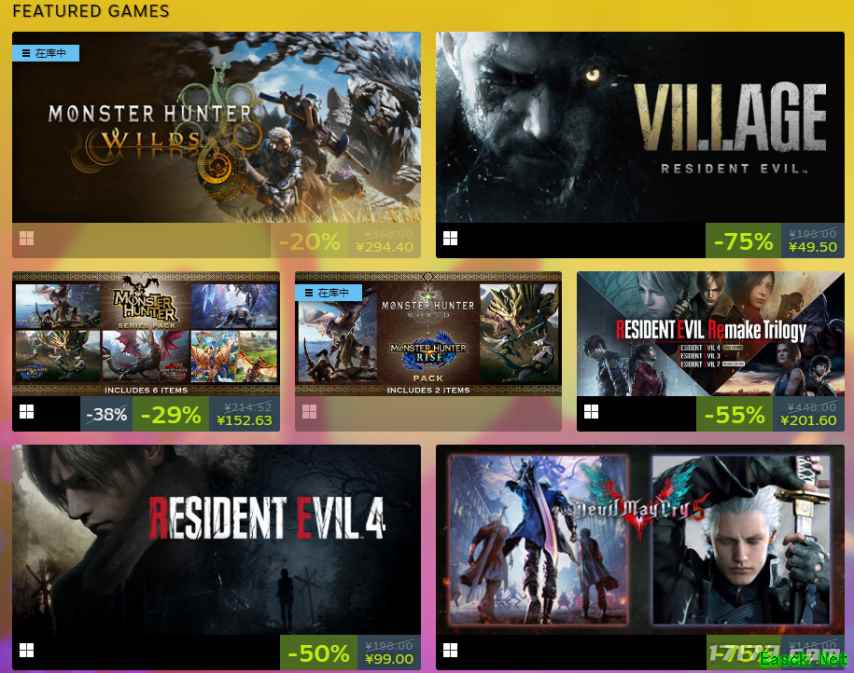 而EA、SE、万代、华纳、卡普空等厂商也都有相当不错的折扣活动,但是玩家需要前往厂商的Steam主页,找到他们自己的夏促专题,才能看到完整折扣名单。