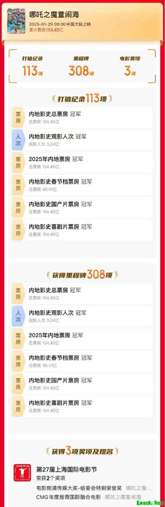 全球影史动画片票房冠军!哪吒2最终票房154.45亿