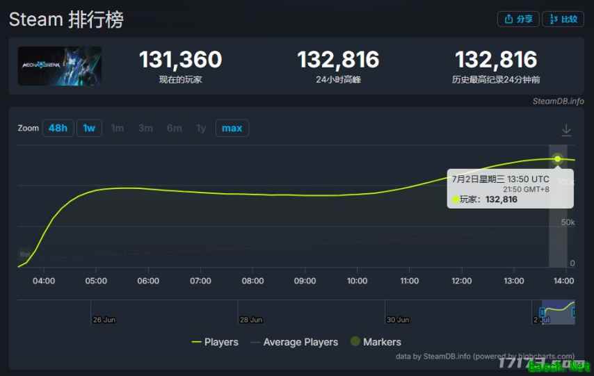 7月2日,《解限机》正式开启全球公测。在开服当日,仅Steam平台全球同时在线玩家数迅速突破13万人。