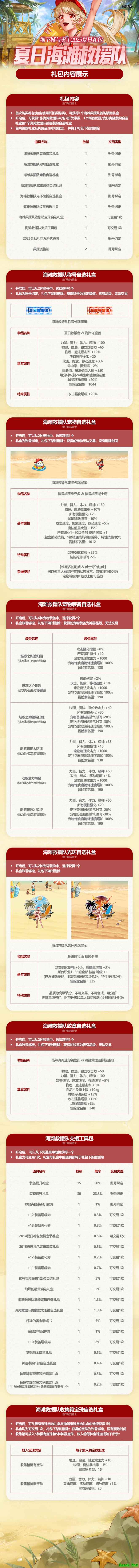 《地下城与勇士》是一款广受欢迎的在线角色扮演游戏。夏日海滩救援队的登场,以及相关的2025夏日礼包内容的爆料,可能会对玩家产生以下影响: 1. 新的游戏体验:夏日海滩救援队的加入将为游戏带来新的角色、装备、地图和玩法,使玩家有更多选择,并可能激发新的游戏创意和策略。 2. 增加娱乐性和期待感:新的内容和角色通常会吸引更多的玩家参与游戏,因为他们可以期待新的冒险和挑战。这种期待感可能会增加游戏的娱乐性。 3. 消费变化:夏日礼包内容的爆料可能会刺激玩家进行消费。新的角色、装备和道具可能会引起玩家的购买欲望,以提高他们在游戏中的竞争力。 4. 社区影响:如果礼包内容对某些玩家群体有特别的影响,可能会影响社区的氛围和动态。例如,如果新的角色或道具引起了争议,可能会引发讨论和争吵。 5. 平衡性问题:新内容和角色的引入也可能导致平衡性问题,因为新内容和旧内容之间的强度差异可能会影响玩家的竞争力。开发者需要妥善处理这些问题,以确保游戏的公平性和可玩性。 请注意,这些影响会因玩家的个人喜好、游戏经验和社区动态而有所不同。 炎炎夏日迎来一抹清凉~ 2025夏日礼包即将上线! 勇士们快随盖盖一起来看看吧~ 具体更新内容以正式服为准