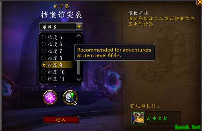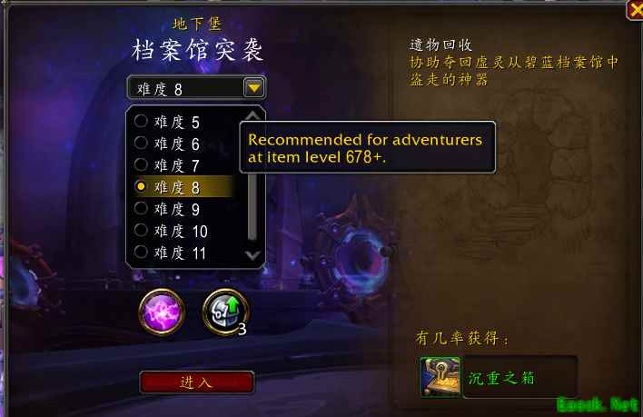 魔兽世界:新赛季地下堡推荐进入装等出炉,8层678+等级,11层697等级!