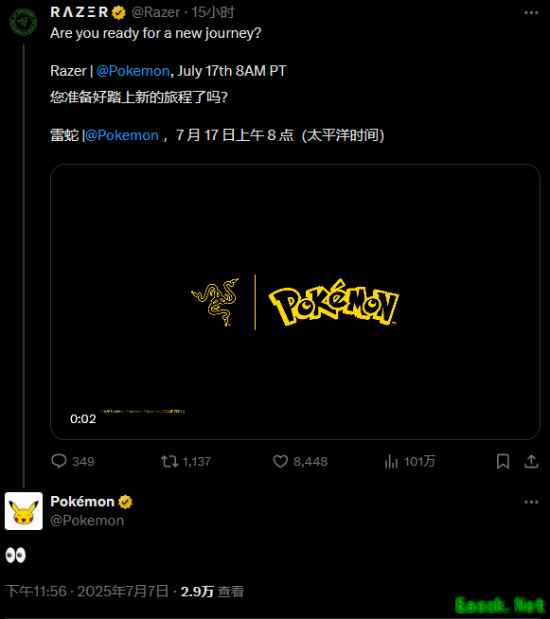 雷蛇×宝可梦联动来了!7月17日晚正式官宣!