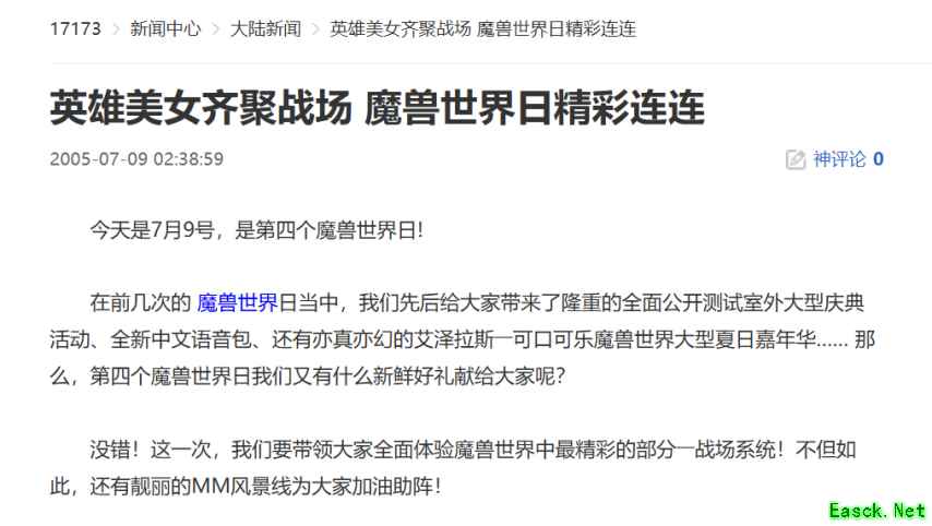 20年前的今天:英雄美女齐聚战场 魔兽世界日精彩连连