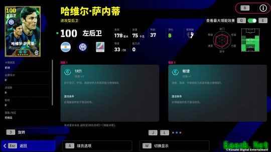 十九载蓝黑征途,他将汗水熔铸于梅阿查的每一寸草皮,在动荡岁月中化身最坚韧的磐石,以队长之名守护信仰! 球场之上,他是进攻的利刃,持球如利剑出鞘,撕裂防线;而防守时,他充沛的体能和精准的拦截,铸就了梅阿查防线上的叹息之墙! 他就是梅阿查永远飘扬的旗帜——哈维尔·萨内蒂! 2009-10赛季,37岁的蓝黑队魂萨内蒂,用十五载的矢志坚守,终于成就了国米的“五冠王”荣光! 联赛上,无论是镇守边路还是坐镇中场,他都是球队不可或缺的擎天之柱,力助国米铸就联赛五连冠的王朝霸业!而欧战决赛上,“小将”统领的钢铁防线更是令南大王锋线哑火,他也以队长之姿帮助国米时隔45年再次登上欧洲之巅! *增能后球员总评可达100分,上阵最大总评可达104分 萨内蒂增能属性为【1对1 +2】 37岁的“小将”仍旧是后防线上的定海神针! 拥有特殊技能【后防领袖】的蓝黑队长 是球队后防线上不可或缺的中流砥柱 萨内蒂自带【封堵】技巧 搭配上100分的体能和不俗的防守数据 让他能兼顾攻防两端高效完成攻防任务!
