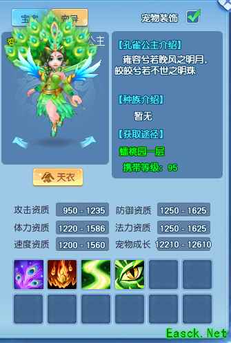 接下来这一位孔雀公主,是个雍容华贵的少妇形象,风姿绰约。不过我相信最能引起你注意的,还是她的华丽孔雀尾羽,立在身后感觉更加气派了,同时也昭示了她孔雀精的真身。