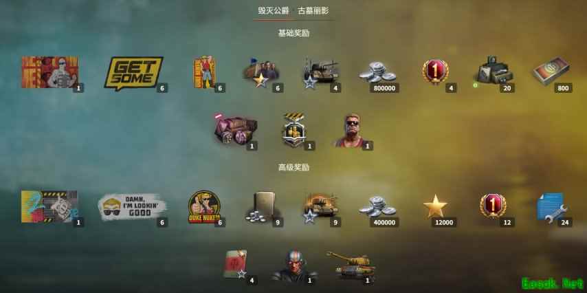 2条高级奖励轨道的最终奖励,均为一辆与其标志性角色完美匹配的全新金币坦克。劳拉的座驾是M系VIII级全能中型坦克IMT:车身细长,但机动迅捷,反应灵敏。毁灭公爵的座驾则是M系IX级突击型重型坦克TS-6:坚固厚实,时刻准备痛击敌人。