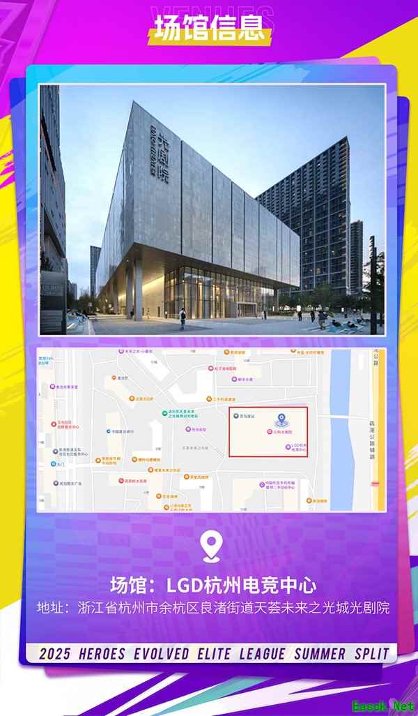 场馆地址:杭州市余杭区良渚街道天荟未来之光城光剧院 市内交通:5分钟速达战场!地铁2号线 杜甫村站B口 → 步行5分钟直达光剧院; 地图APP搜索 “余杭区良渚街道天荟未来之光城 光剧院”;高能直达线路(杜甫村站下车即达):公交389M路、428M路、1221M路、2587M路、杭德公交专线、数达2号线、机场大巴良渚永旺城线; 新电竞时代的杭州宣言 顶级舞台×电竞基因×全民狂欢,今夏共赴良渚电竞圣殿!从社区赛到LGD职业殿堂,从选手操作到战场沉浸——7月25日,英魂之刃在五千年的良渚文明之地,开启属于中国电竞的“杭州时间”。 这座曾见证LGD战队辉煌的舞台,能否诞生下一个英魂传奇?我们杭州见分晓! |