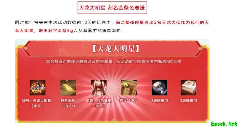 这些只存在于我们记忆深处,甚至很多人都以为已经退隐江湖的初代大佬,现在竟然一个个地,都站出来为《天龙八部·归来》代言了! 我看着月牙婉婉云淡风轻地说着:大家好,华东电一双龙洞的月牙婉婉,回来了。那一刻,我真有点激动了。就像是迎来了一场,跨越了十几年的老友回归。 那么究竟为什么,这些初代大佬都愿意站出来?答案很简单。因为《天龙八部·归来》这次,是真的做到了以玩家为核心。 他们搞的这个全民代言人活动,不是去请那些和我们无关的明星,而是实实在在地,分给我们这些真正的玩家。 只要你参与,就白送你1000绑元、绝版称号、3级材料。拍得好,还有时装拿。要是真成了天龙大明星,还给你送刻着你名字的金条!