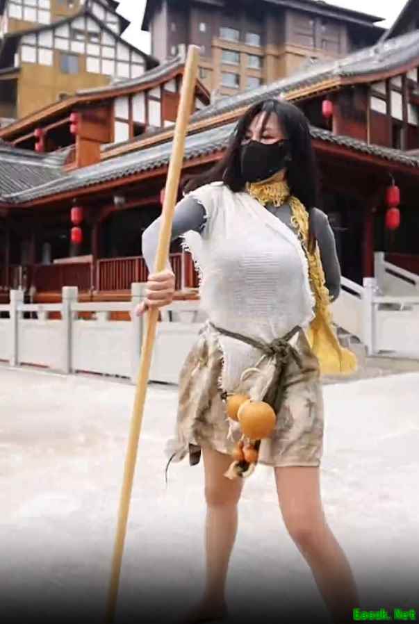 我正看得津津有味,结果又刷到了几个重量级人物。 @挺OK个姐的,一个看起来娇小可爱的姑娘,结果视频里抄起一根棍子,上来就是一招亢龙有悔,还说自己是七年丐帮弟子。气势简直比我当年帮战的时候还猛!