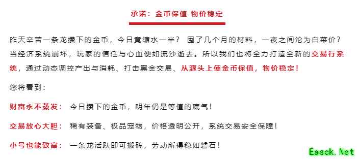 第二条,承诺金币保值,物价稳定! 金币贬值的痛,懂得都懂。辛辛苦苦刷了一天副本,攒下的金币,可能一夜之间就毛了。 这次项目组承诺,要用全新的交易行系统,从源头上保证经济稳定。这意味着,辛勤搬砖的每一分劳动,都能得到公平的回报!