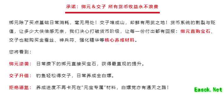 第三条,更是掀桌子——承诺所有货币收益永不浪费! 当年的绑元和交子,后期基本就是一堆废数字。绑元买不了好东西,交子更是堆成山没处花。 现在,官方承诺,绑元能直接买宝石、买技能书!交子能直接买金蚕丝、润魂石这些核心养成材料!这等于直接把白嫖党的路,给铺成了康庄大道!