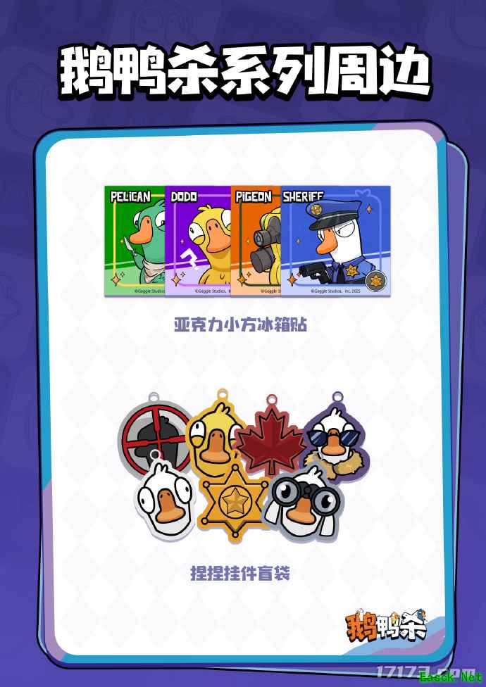 虽然初期可以通过精美的美术设计吸引用户“破冰”购买,但要实现持续复购,关键在于构建深入人心的角色设定和情感连接。如果没有鲜明的人设和情感共鸣点,用户很难产生长期的情感投入,复购动力就会不足。对比国内市场,后期表现强劲的“谷子”品类,如国风乙女游戏《恋与深空》等,之所以销量领先,正是因为用户对特定角色产生了强烈的情感依恋——他们愿意“磕”一个角色,从头追到尾,为角色的每一个周边买单。而这正是《鹅鸭杀》当前在衍生品开发上亟需补足的一环。 最初我们认为,单纯依靠一个游戏形象的IP,其商业价值是有限的,很难支撑起高溢价的衍生品体系。但在实际推进过程中,我们逐渐发现《鹅鸭杀》其实具备独特的潜力。虽然它的核心形象是一只大白鹅,看似单一,但游戏中丰富的职业设定却在社区和直播生态中自发演化出了极具生命力的梗文化,比如“呆呆鸟”“鹈鹕”“警长”等职业,不仅拥有独特的技能机制,更通过主播的演绎和玩家的传播,形成了各自鲜明的标签和网络热梗。 这些职业背后所衍生出的玩法记忆点和社群共鸣,为我们提供了角色延展的突破口。而金山世游的优势在于我们具备自主研发能力,可以根据市场反馈和运营思路,主动对产品进行迭代和优化。因此,我们现在在《鹅鸭杀》美术资源的规划上,已经明确了一条以角色设定为核心的路径:不再只是零散地推出皮肤,而是围绕每个具有梗文化基础的职业,系统性地开发成套的主题皮肤系列。 比如针对“呆呆鸟”,我们会设计一整套与其人设和网络形象相关的皮肤内容;同理,“鹈鹕”“警长”“网红鹅”“加拿大鹅”等身份设定,我们成功将单一形象差异化、人格化。这些角色不再只是视觉变化,而是承载了特定梗文化和年轻群体情感认同的符号,从而为IP的深度运营和衍生价值提升打下坚实基础。