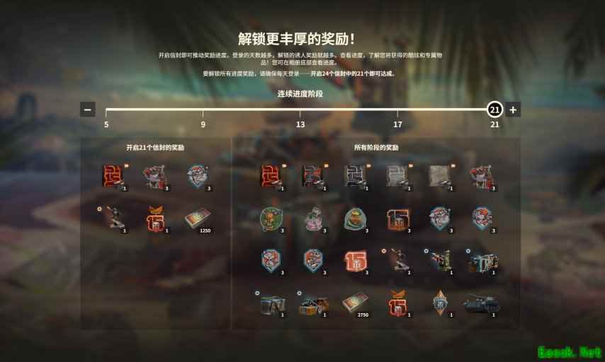 前往活动页面查看详情↓↓↓ https://wot.360.cn/model/index.html 欢庆周年福利加满,战斗免费拿8金重坦 除纪念徽章专属活动以外,《坦克世界》15周年庆典还有更多福利有待车长们上线领取。 ·每日精选 8月8日至9月1日,前往车库访问相册,开启信封,填充相册,即可领取丰厚的每日奖励,15周年纪念贴花、银币、债券、合金元件、高级账号,不容错过!