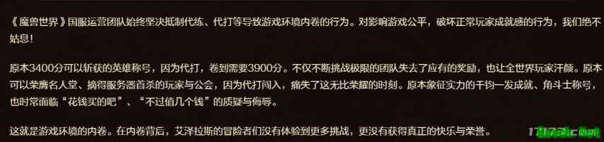 20年来头一回!魔兽国服号召“反内卷”! 8月4日,《魔兽世界》国服运营团队针对正式服中代练、代打泛滥的问题,出台了一系列严厉打击的新规,包括回收掉落物品、取消头衔、严重者封号等措施,呼吁玩家共同“反内卷”。