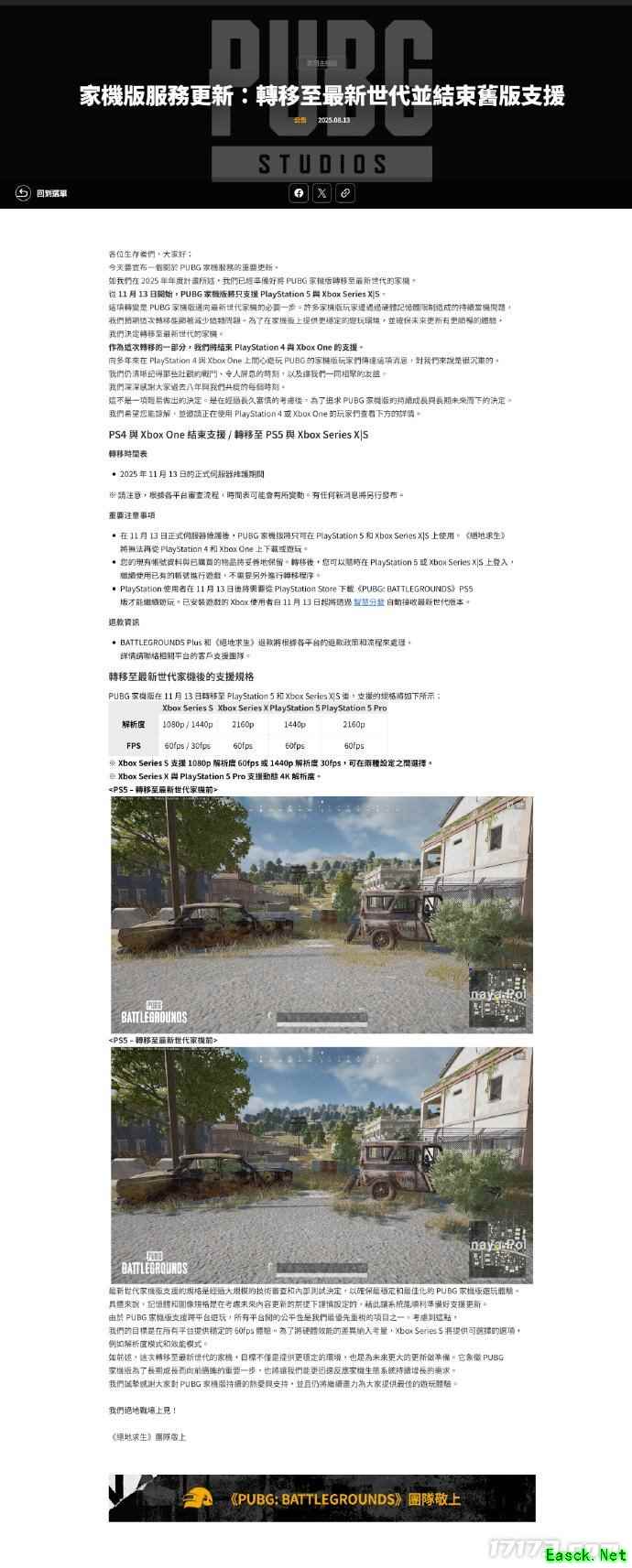 继《原神》之后,《绝地求生》也宣布停止支持旧世代主机
