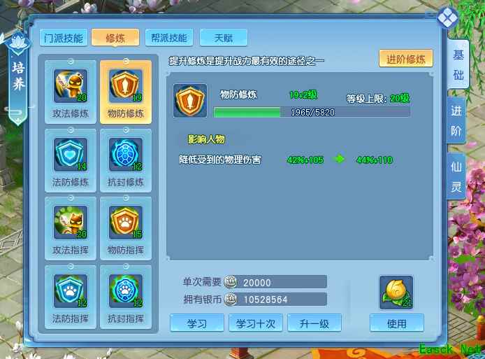 另外你还能通过消耗银两来提升修炼等级,本质上和吃果子差不多。随着你角色等级的提高,你的修炼等级上限也会水涨船高。在升级的同时,别忘了也要不断精进自身的修为! |