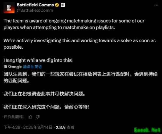 目前,官方已发布更新,对这一问题进行了初步修复,并继续对该问题进行评估。“如果您目前遇到匹配问题,请确保客户端更新到最新版本。”