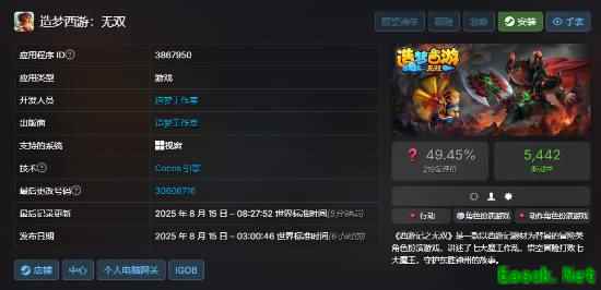 造梦工作室原班人马打造的《造梦西游:无双》今日11:00正式免费登陆Steam平台,提供35项成就,最低要求2GB内存+2GB硬盘。