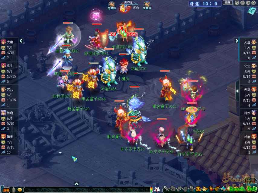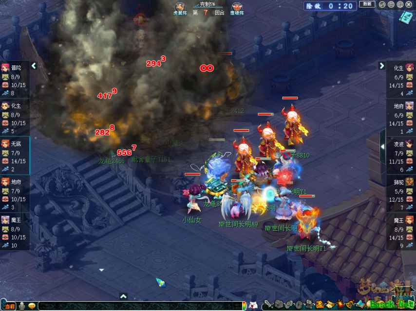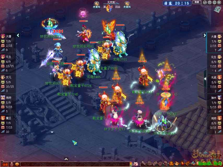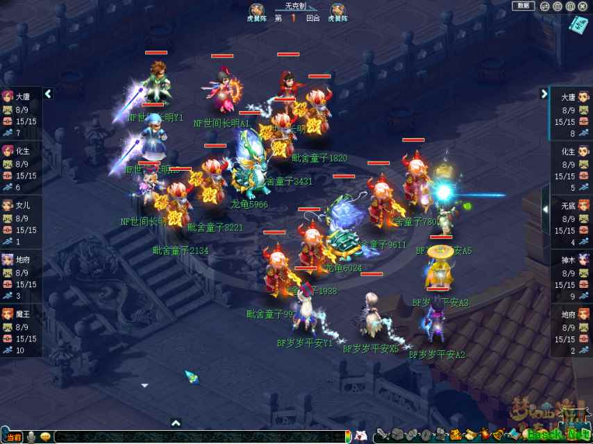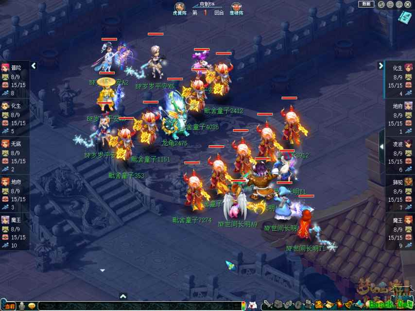 参与2025年全名组决赛的队伍为【岁岁平安】和【世间长明】。就之前的表现而言,这两支队伍均拥有极强的应变能力。可以说,即便决赛阶段有禁选,也很难干扰其阵容选择。下面,就带大家简单回顾一下他们之间的对决吧! 国标点杀体系大战,【岁岁平安】拿下首胜  在第一场比赛中,【岁岁平安】选用了“三扫大唐、化生、无底、神木、地府”组成的“国标点杀”体系,【世间长明】则选用了“大唐、化生、女儿、地府、魔王”组成的“国标点杀”体系。 比赛前期,双方主要以加状态和清宠为主。不过,由于【岁岁平安】携带了无底洞,可以使用惊魂掌、煞魂冥灯提升点杀成功率。 比赛第9回合,虽然【世间长明】洞悉了【岁岁平安】的点杀意图,但由于【岁岁平安】神木林输出爆炸,依然击杀了【世间长明】魔王寨,成功拿到优势。 比赛中期,【世间长明】通过压制【岁岁平安】大唐的方式逐渐缓解劣势。比赛第15回合,【世间长明】魔王寨发力,成功秒掉【岁岁平安】大唐。可以说,在只剩一个输出点的情况下,【岁岁平安】很难对【世间长明】构成威胁。 比赛第19回合,【岁岁平安】靠着大唐和神木林的输出压倒【世间长明】大唐,成功干扰对手点杀节奏。随后,【岁岁平安】果断开启防守模式,令【世间场面】非常头疼。 比赛第22回合,【岁岁平安】靠着大唐官府剑斩和神木林输出,成功点杀【世间长明】魔王寨。这个时候,只要【岁岁平安】地府成功丢出灵宝,就可以靠着决胜时刻的规则收下胜利。 比赛第24回合,双方进入决胜时刻,【岁岁平安】靠着大唐官府速度优势,成功压倒【世间长明】大唐官府,拿下比赛胜利。三攻VS国标点杀,【世间长明】扳回一城  在第二场比赛中,【世间长明】选用了“化生、地府、凌波、狮驼、魔王”组成的“三攻”体系,【岁岁平安】则选用了“力普陀、化生、无底、地府、魔王”组成的“国标点杀”体系。 比赛一开场,【世间长明】就瞄准【岁岁平安】力普陀进行点杀。虽然伤害不够,但他们靠着在比赛第2回合靠着隐攻宠的速度优势成功补刀,令【岁岁平安】失去了关键输出点。