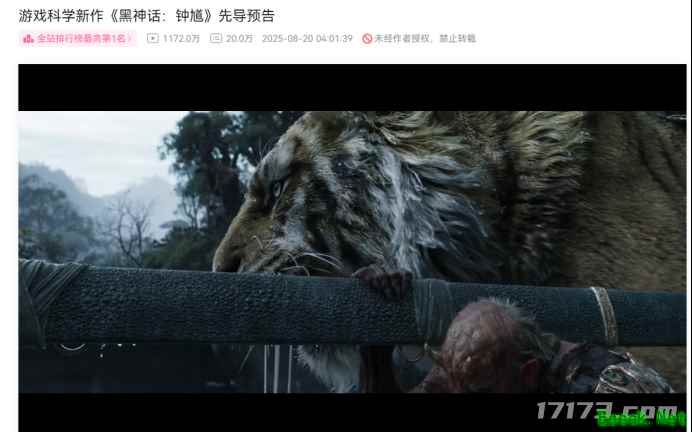 玩家对此有多惊喜呢? 不到24小时,《黑神话:钟馗》的先导预告在B站播放量突破1172万,强势登顶全站热门榜首。