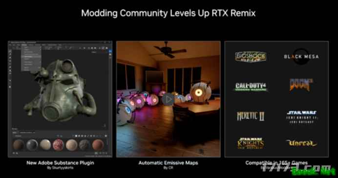 不仅如此,RTX Remix 还打通了二创的渠道。 MOD 制作者可以将从游戏中提取的 3D 模型,无缝导出至Blender或Adobe Substance 3D 等专业软件进行重塑与二次创作,再将升级后的模型重新导入游戏,实现材质、建模与特效的全面重制。