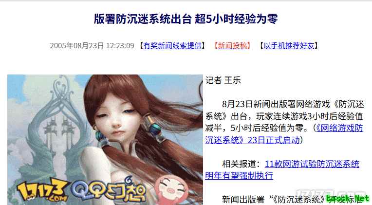 20年前的今天:版署防沉迷系统出台 超5小时经验为零