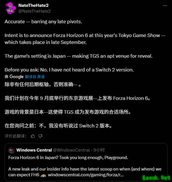 NateTheHate2表示,除非临时有变动,他们的计划是在今年9月下旬的东京电玩展上宣布《极限竞速:地平线6》。游戏背景设定在日本,这让东京电玩展成为公布的绝佳场所。不过他目前还没听说过有Switch2版本。 >