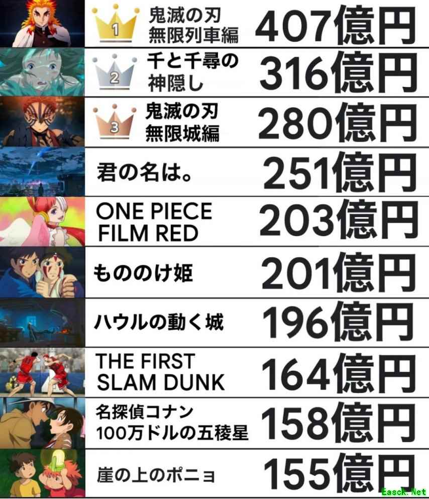 前面只剩下两座大山:宫崎骏的《千与千寻》(316.8亿),以及自家大哥《无限列车篇》(407.5亿)。