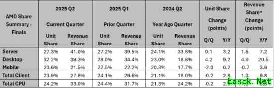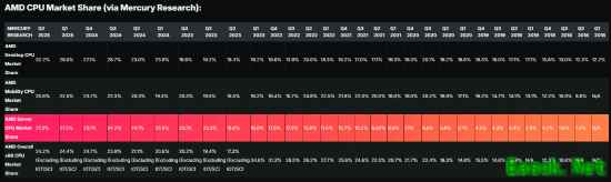 AMD EPYC处理器上演奇迹!仅用7年收入份额达41%