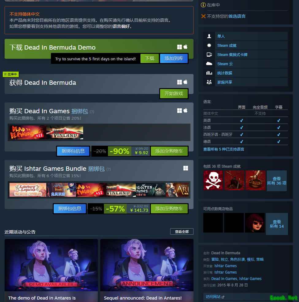 Steam喜加一!免费领取生存管理游戏《死在百慕大》