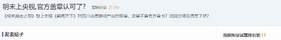 这些消息引发了玩家们的热烈讨论,截止至发稿时,话题“坏了真让它洗白了,明末好评飙升”和“明末上央视,官方盖章认可了?”分别登上了贴吧热议榜第7和第11位。 >