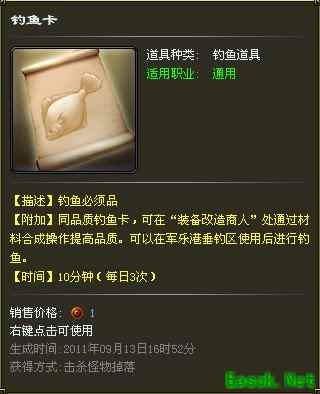玩家可点击界面离开钓鱼状态结束钓鱼。玩家组队状态下和增加好友,;每日只可使用三张钓鱼卡,每张钓鱼卡10分钟;钓鱼卡61级以上怪掉落,分为白、蓝、黄、绿、紫五个品质,品质越高掉到高品质鱼几率更大。