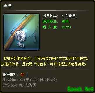 玩家在军乐城钓鱼区装备鱼竿和钓鱼卡后使用钓鱼技能即开始钓鱼。钓鱼开始后玩家不可移动,不可使用技能。玩家使用钓鱼卡后每隔15秒可掉到一条鱼,每钓到一条鱼,都能收获不同的经验,挂机没有时间限制,想挂一天都行。