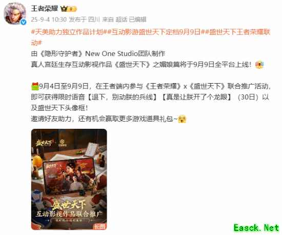 《盛世天下》媚娘篇联动《王者荣耀》:上号得限时语音