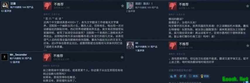 玩家评价方面,Steam上玩家评价数量最高的是英语和俄语区,均为好评如潮。在简体中文区好评率仅为57%,玩家差评点大部分来自于游戏的中文翻译问题,不少玩家反馈本来可以大白话说出来的,非要用文绉绉的感觉,让人看起来很费劲。