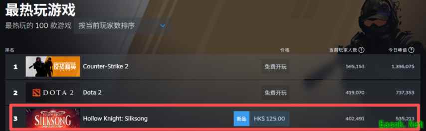 截至9月5日,《空洞骑士:丝之歌》位居Steam热销榜首位,Steam最高在线峰值超过53万。