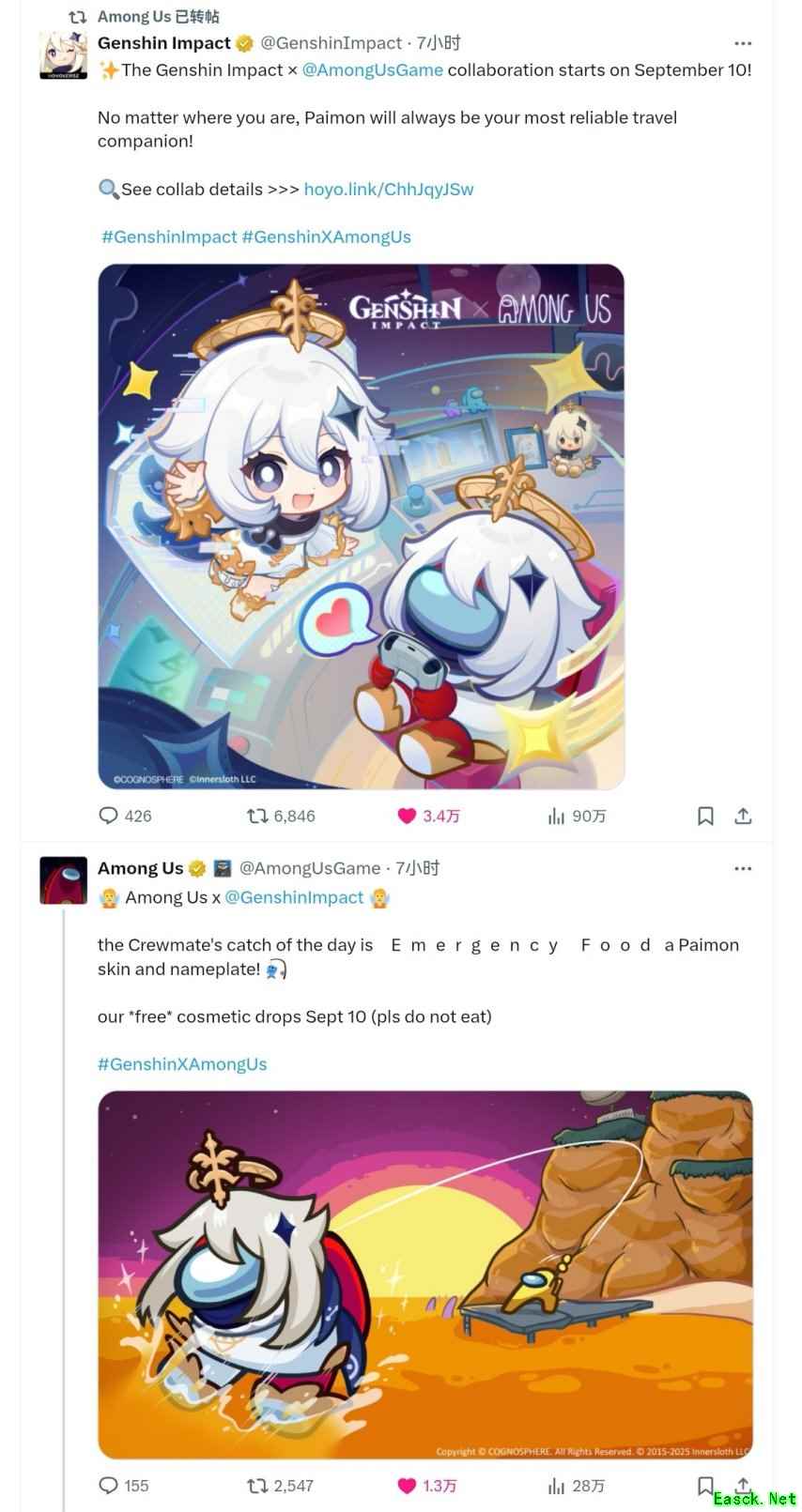 活动将于9月10日开始,持续至10月10日。根据目前的消息,本次联动为《AmongUS》方面单向联动,《原神》中并无新增内容。