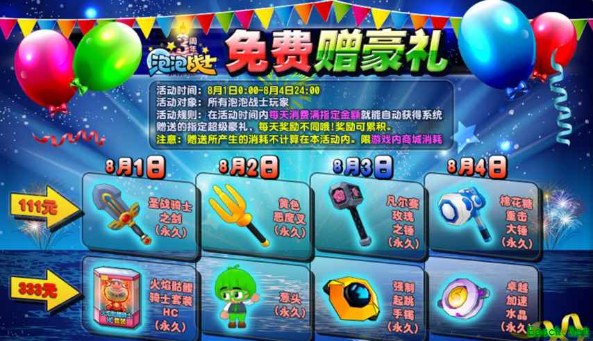 6、宣发力度不到位:在国服内测、公测时,很少能看到泡泡战士的广告和宣传,导致很多人都不知道这款游戏。但同时期这游戏在韩国火的一塌糊涂,例如:和NERF孩之宝联动、少女时代代言、与匡威品牌联动等。 7、福利活动少:外服超强力武器可靠活动白嫖获得,国服必须充钱且无保底机制。