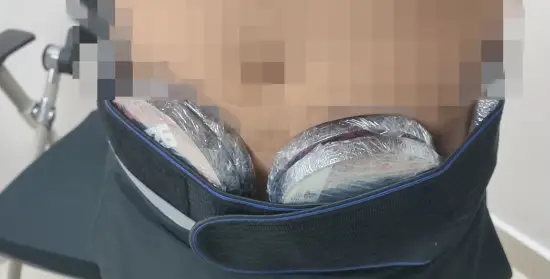 9月5日19时许,在港珠澳大桥珠海公路口岸珠港旅检进境大厅“绿色通道”,海关关员对通关旅客进行监管时,发现一名身着白色T恤和宽松短裤的旅客神情异常、步态僵硬,遂对其实施拦截。