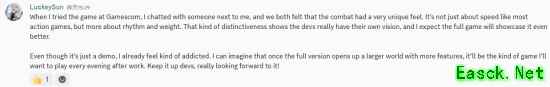 同时也有更多撰写短评的玩家对游戏的美术、战斗、打击感等元素给出好评,尽管目前的《山外山》还处在较为早期的Demo阶段,但其展现出的素质与潜力已经足以吊起他们的胃口,让他们期待正式版的发售。