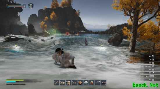 《山外山》Demo为玩家准备了多种击败Boss的途径——玩家可以在地图中找到高级的武器装备及便利的存档据点,在偏硬核的ARPG战斗中活用远程与近战武器击败Boss,每种武器都拥有自己独特的攻击模组及战技,对动作游戏高手而言,正面克敌制胜并不是难事。 对于动作游戏苦手,游戏也提供了多种“智取”Boss的方法——例如在探索地图时,玩家可能会发现山顶停驻着摇摇欲坠的落石,如果以巧妙角度将其推下,不仅能直接摧毁敌方的木制据点,还能直接削掉Boss整个一阶段的血条。 又例如,细心的玩家可能会发现这名Boss周身带火,这同时代表了Boss的特性与弱点——玩家在探索地图时会找到能够“祈雨”的交互点,在“祈雨”过后,世界天气将被强制转换为“暴雨”,此时,地图上的水属性机关将大幅增多,且山上的天然堤坝也会开始蓄水,若玩家用地图中生长的“炸弹果实”将堤坝炸开,洪水就会倾泻而下,将火属性的Boss当场秒杀。