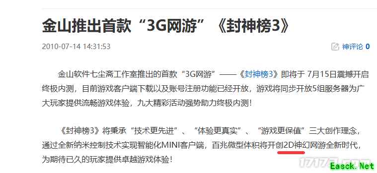 面对这场危机,官方虽以大规模封号的强硬策略全力对抗,尽管最终艰难遏制了乱象,却也让《封神榜2》付出了 元气大伤的沉重代价,游戏在线人数随之断崖式下跌,玩家活跃度大幅下滑。 雪上加霜的是,后续烈火工作室启动战略重组,导致游戏核心研发进度陷入停滞,关键更新与新内容迟迟未能跟上玩家期待。 多重打击之下,这款曾承载不少玩家期待的游戏,终究如流星般匆匆划过游戏市场,徒留 “稍纵即逝” 的遗憾。 封神榜3 或许是市场表现与营收不及预期,作为封神榜IP的缔造者,烈火工作室也难免遭遇修整。 2009年2月,金山进行业务重组,北京的网游研发部门被拆分为三家独立子公司,除新成立的上水轩之外,原烈火工作室被拆分为“烈火”与“七尘斋”两家。 同年《封神榜3》开始立项。 2010年4月因业务重组解散,烈火工作室研发项目及部分成员并入七尘斋工作室,至此,烈火工作室已然成为历史,七尘斋工作室全面接受封神榜IP。 2010年4月29日,《封神榜3》首次对外封测,三个月后,开启了终极内测。 2012年6月28日,《封神榜3》开启公测,以战争和PK为核心玩法,继承了《封神榜》系列一贯的传统。虽然打出了“3G”网游的口号,但游戏画面依然停留在2D,且整体的玩法框架还是未能跳出前作的框架。