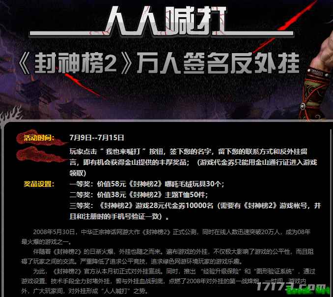 游戏开测不久后,在线人数峰值就达到了20万,创下了《封神榜》系列网游的在线新高。 令人惋惜的是,这款游戏此后遭遇了外挂与工作室的双重疯狂侵扰 ,外挂肆意破坏游戏技公平,工作室则大量挤占游戏资源、扰乱生态平衡。