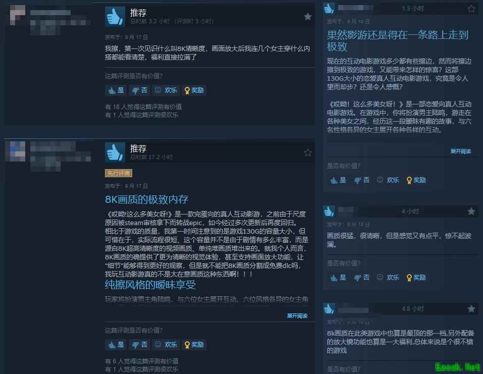 给出好评的玩家认为游戏不错,第一次见识什么叫8K清晰度,画面放大后我连几个女主穿什么内搭都能看清楚,福利直接拉满。演员的质量也很在线。
