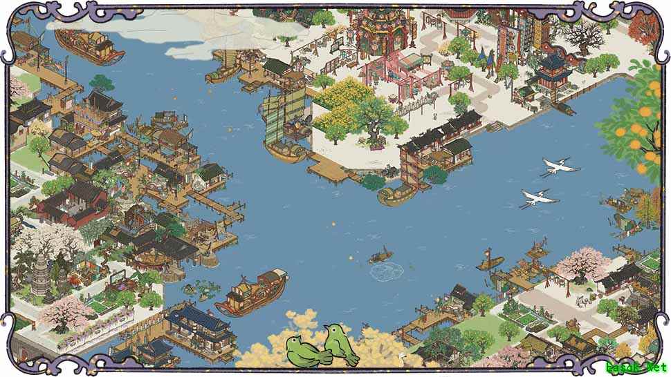 三条江水汇聚宁波,将这里分为三个地块,造就了宁波府特色的渔乡风情!玩家可在宁波府滩涂地块自由使用「栈桥」,建造出自定义、个性化的滩涂地块。 栈桥上可放置「渔网铺子」、「鱼干坊」、「盐渍鱼肆」等全新建筑以及「十里灯街」、「同福酒肆」、「卖花担子」等经典建筑,玩家可充分利用水面上的空间,为治下宁波拓展更多区域。 商船破浪行