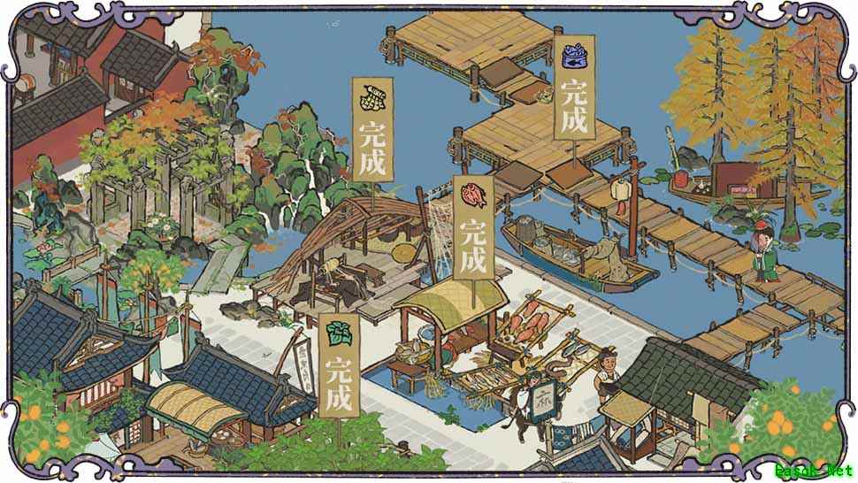 宁波府的居民生计以打渔为主,除了打渔获得的「渔获」之外,居民们还会将其晾晒加工成「鱼干」。也有许多擅长制作的居民,会生产制作「渔网」供大家使用,用来捻织渔网的「苎麻」亦是宁波府的特产。玩家可化身知府大人,安排治下之城的宁波居民生产这4种特色资源,将宁波府建设得更加繁荣。 古韵千秋续