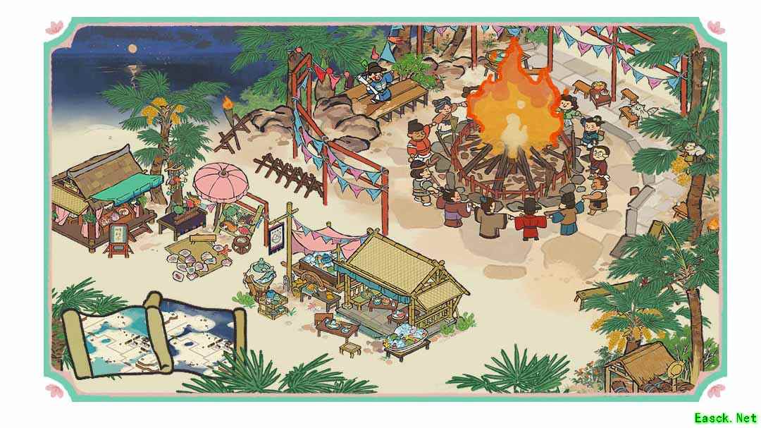 四周年庆典特别海岛小镇「棕影岛」,白昼间清澈碧绿的海浪不断轻拍着沙滩,夜幕下深蓝静谧的海与岛上的篝火交织。知府大人可随心布局限定游园建筑「海风对对店」、「热夏冰冰饮」,还可参与建筑内的庆典游园活动收获丰富奖励。 在周年庆典期间,棕影岛将举行热闹的「篝火大会」,江南居民围绕在温暖的篝火旁欢庆,知府大人可前去加入这一乐事,共庆江南盛时盛景。 悲喜戏中事
