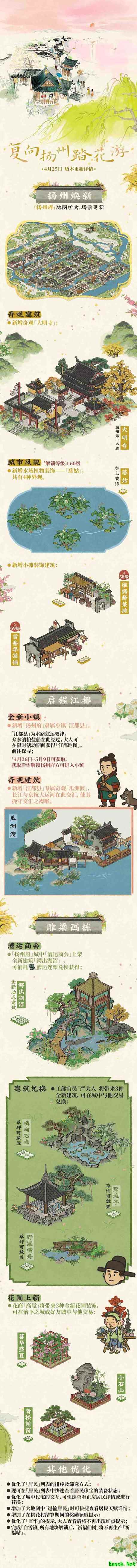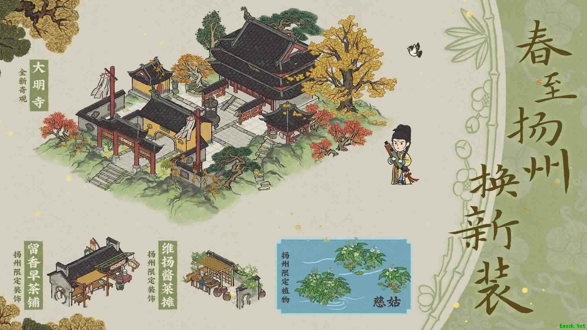 古风模拟经营手游《江南百景图》已于4月25日正式更新3.3.0版本内容和相关活动,本次更新主题为“复向扬州踏花游”。扬州府焕新,知府大人可启程探访,与居民江南共赴春日好时光! 春和景明 扬州焕新