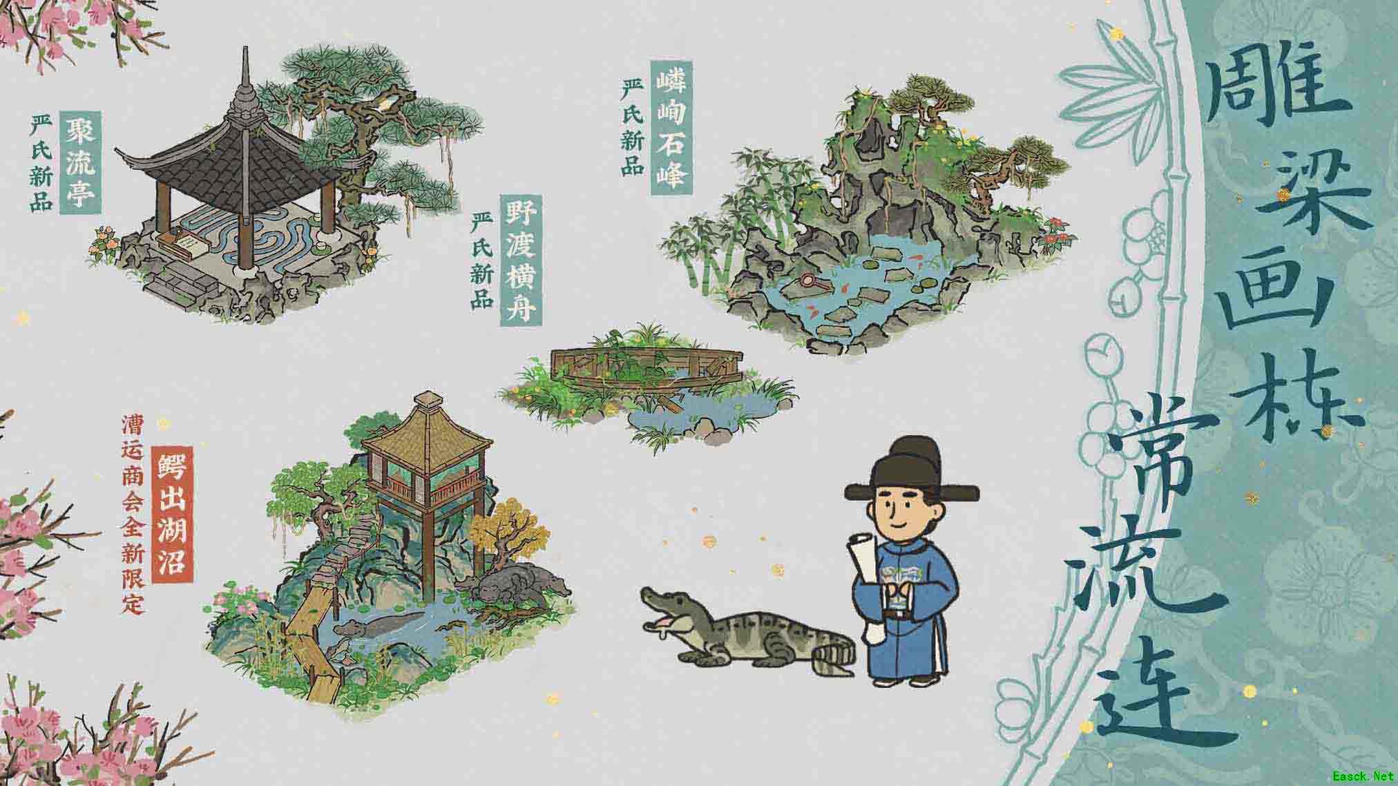 本次版本更新后,花商高觉还将为大人带来「盆中青松」「凌霄花开」「叠山一景」3种全新花圃装饰,知府大人可与他进行交易,将花圃置于城中街巷、丰富水乡景色。